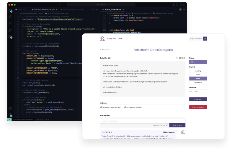 Entwicklung eines individuellen UX-Designs sowie einer API-Programmierung für ein bestehendes Support-Ticket-Management.
